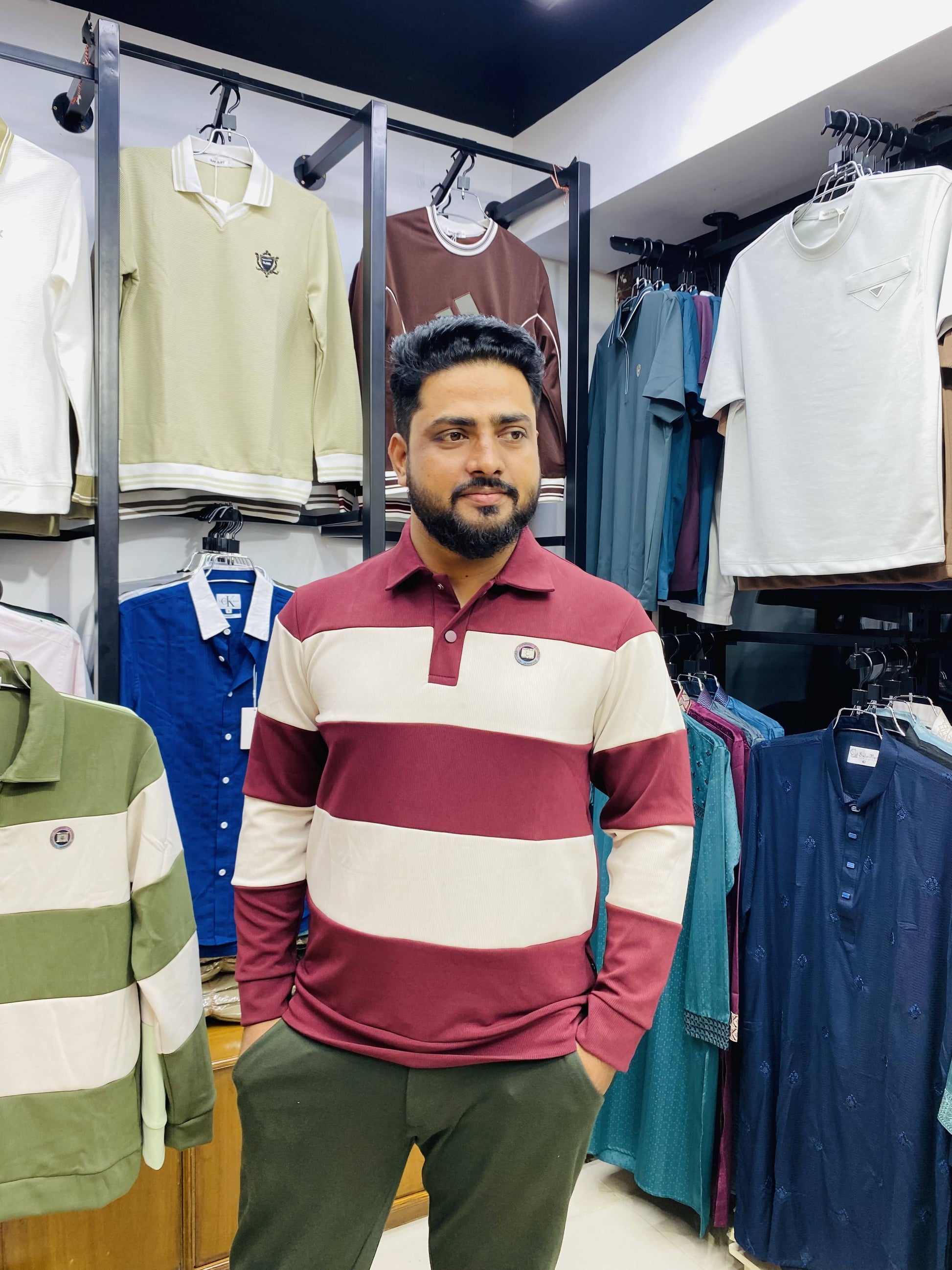ম্যারুন-ক্রিম স্ট্রাইপের bold লুক আপনাকে করবে আরও স্টাইলিশ ও কনফিডেন্ট।
